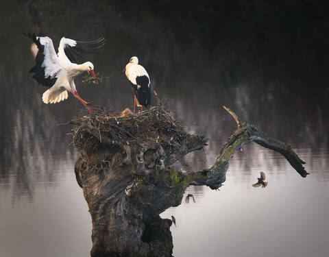 Title: mesmerizing shot two storks building their nest