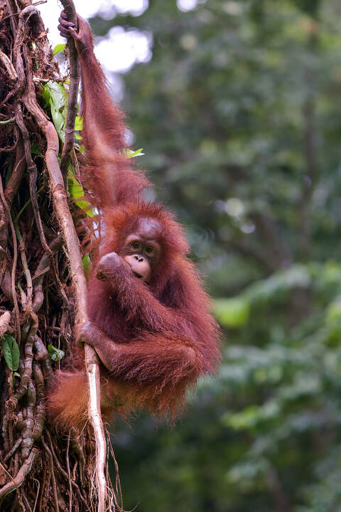 Title: orangutan child playing tree
