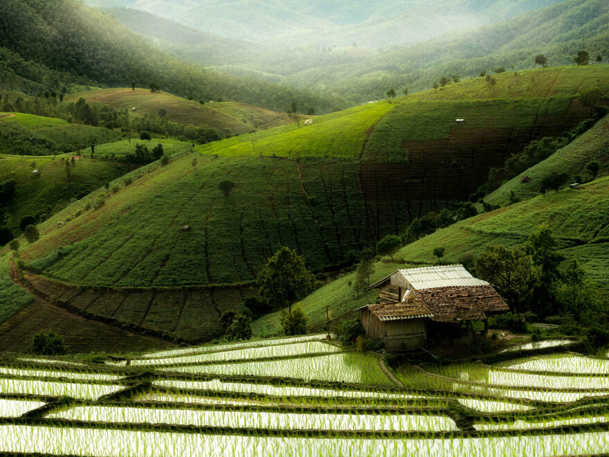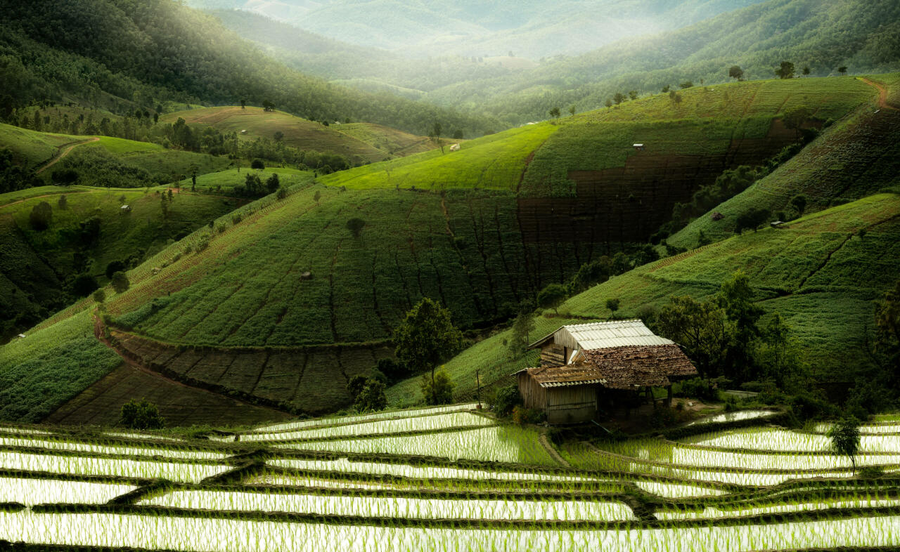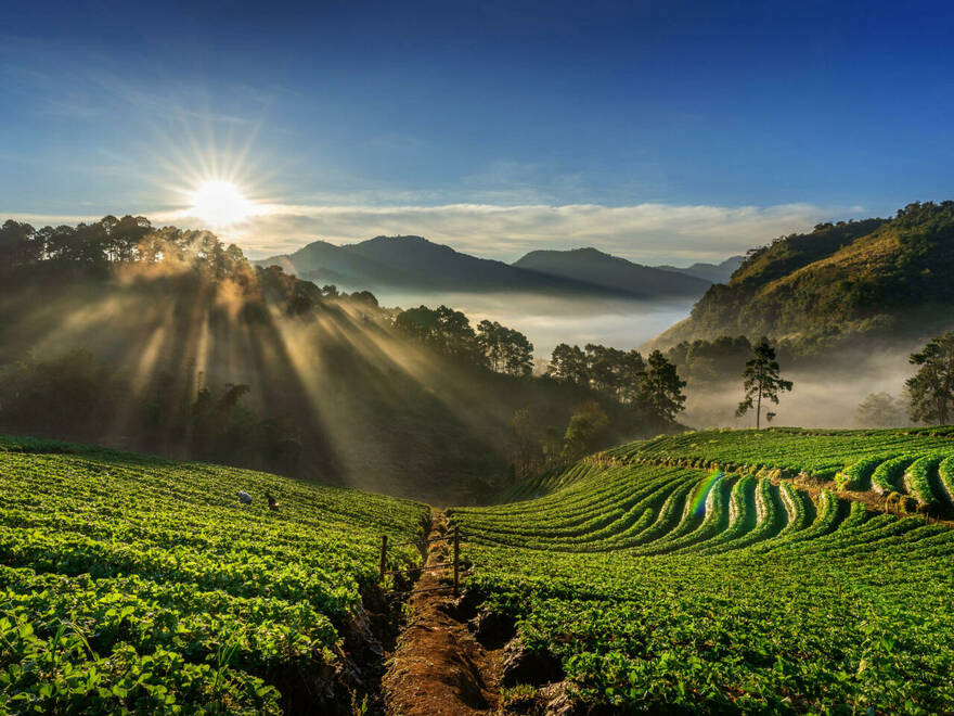 beautiful strawberry garden sunrise doi ang khang chiang mai thailand