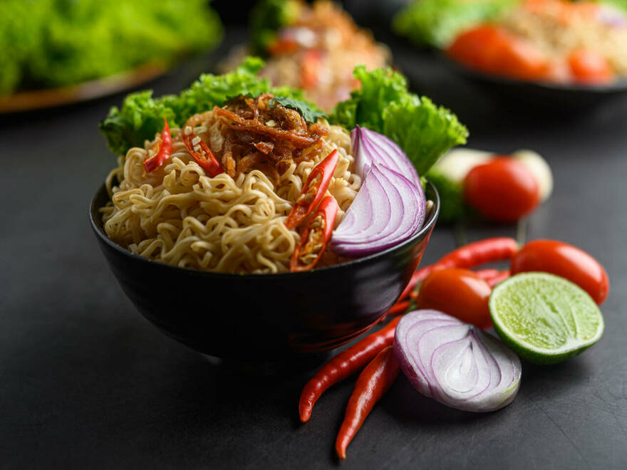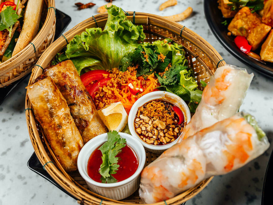delicious vietnamese food including pho ga noodles spring rolls white wall