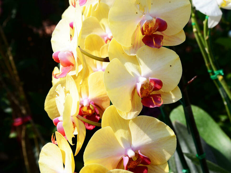 orchid yellow flowers floral blossom green leaf plant tree garden park tropical freshness thai people travelers travel visit rest relax mae rim chiang mai thailand