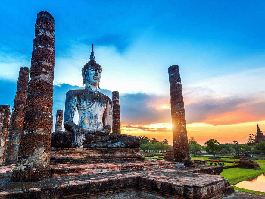 buddha statue wat mahathat temple precinct sukhothai historical park